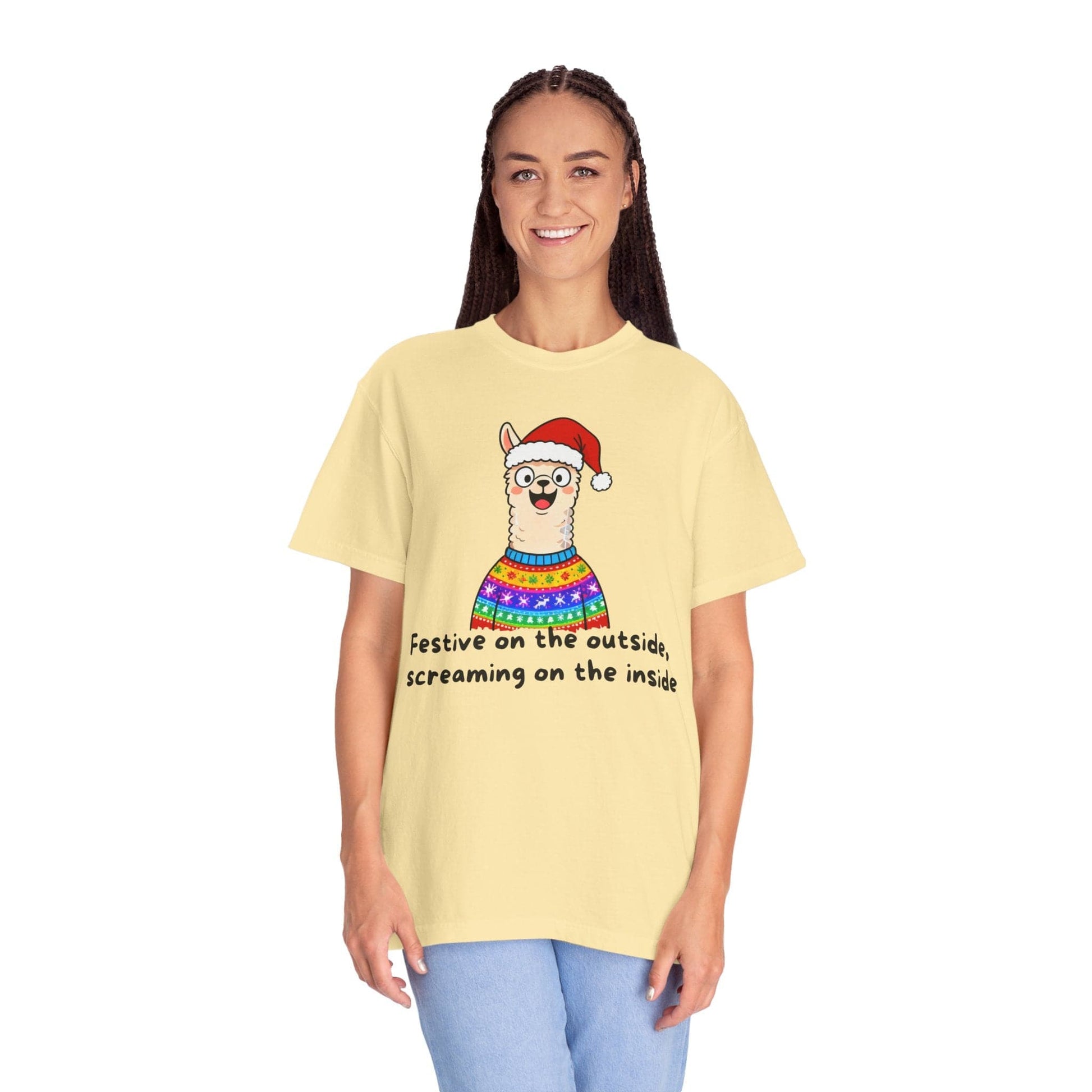 Festive on the Outside, Screaming on the Inside – Relatable Holiday Comfort Colors Tee