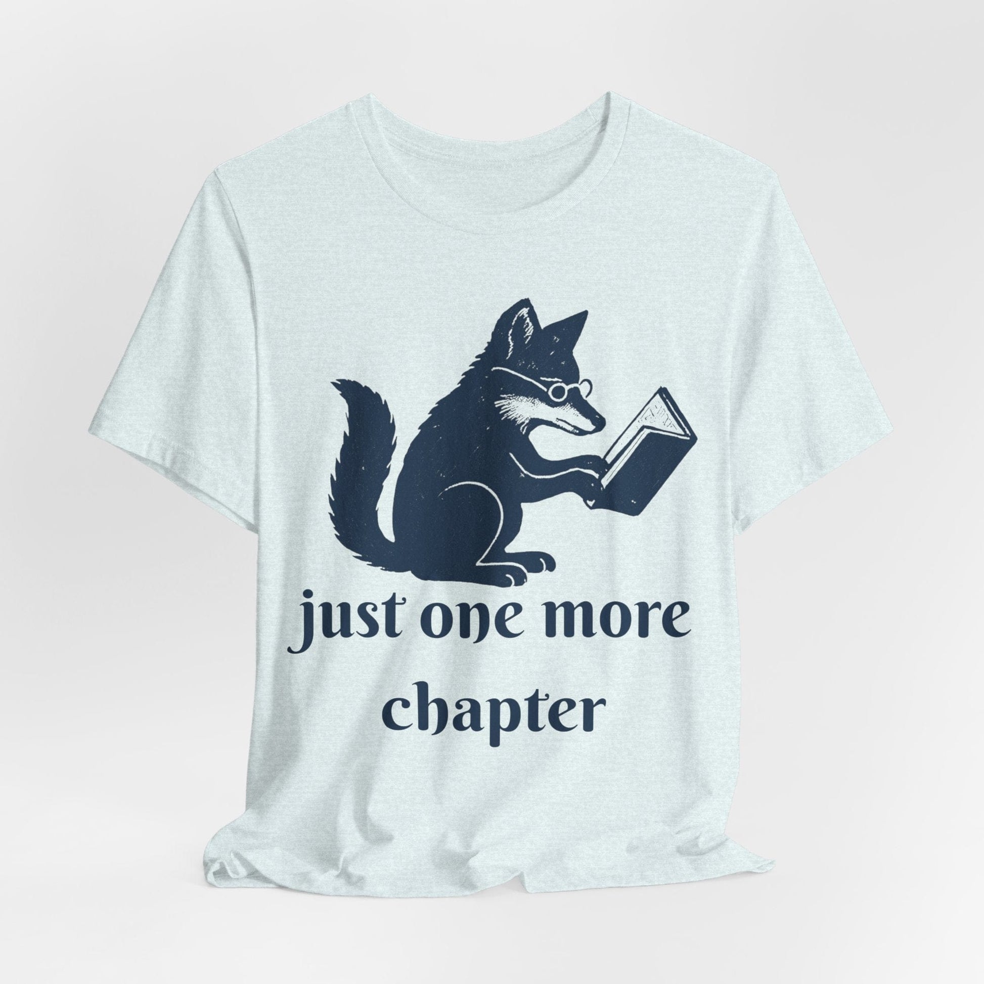 Perfect for readers who can never put a book down, this “Just One More Chapter” t-shirt features a charming illustration of a fox wearing glasses and deeply engrossed in a book. With its cozy, whimsical vibe, this shirt is ideal for book lovers, late-night readers, and anyone who knows the struggle of wanting to finish “just one more page.”