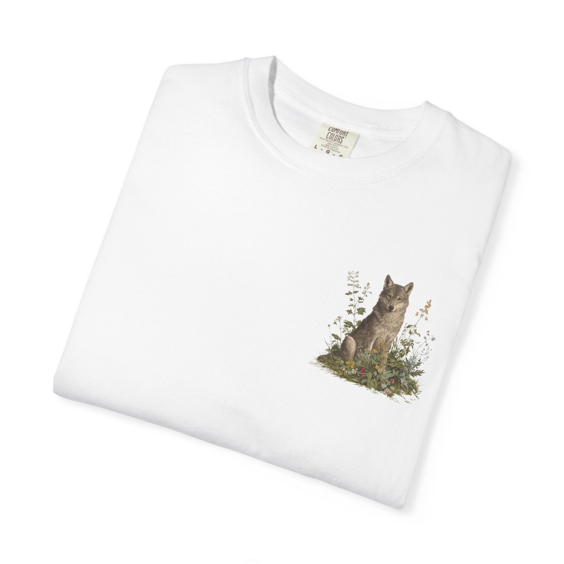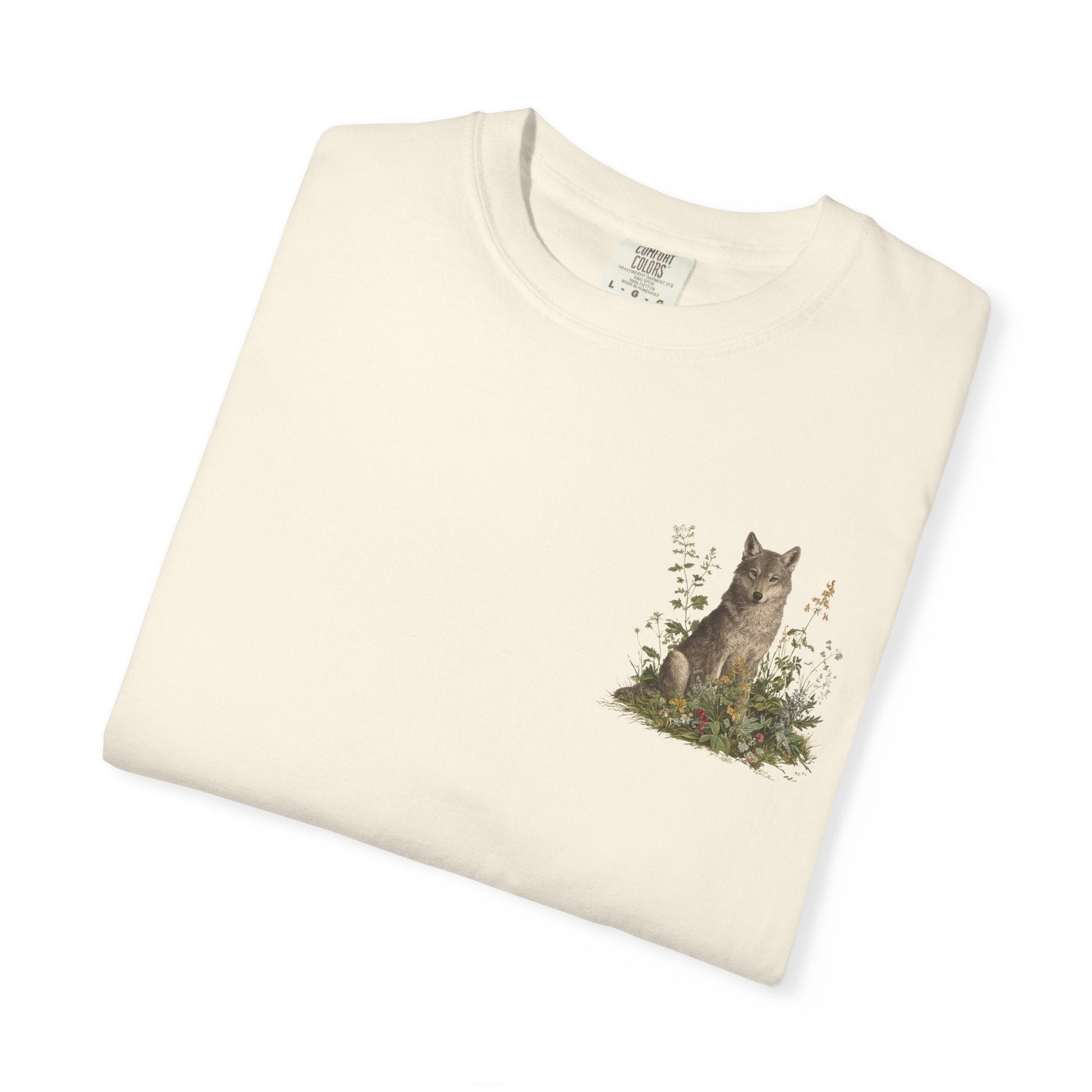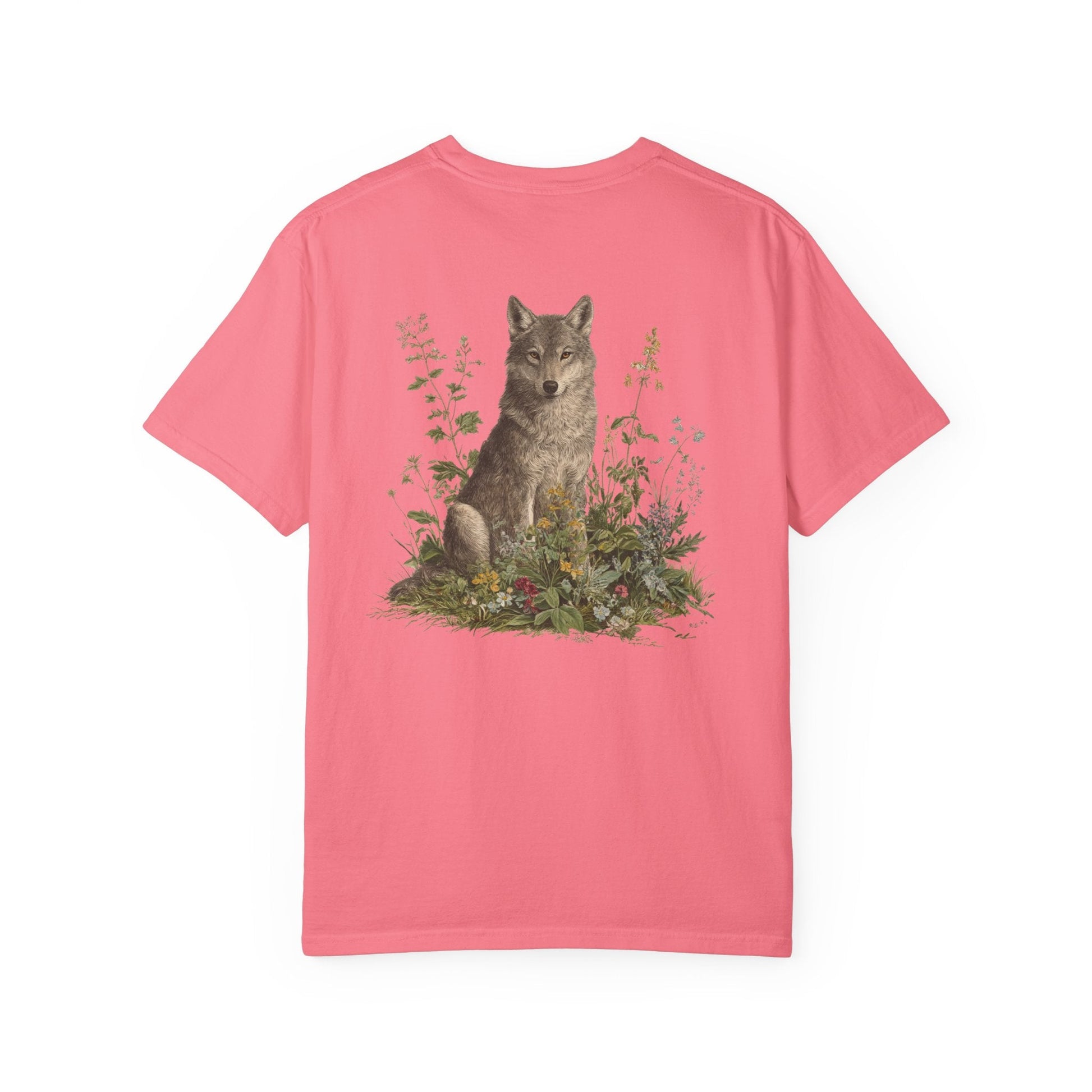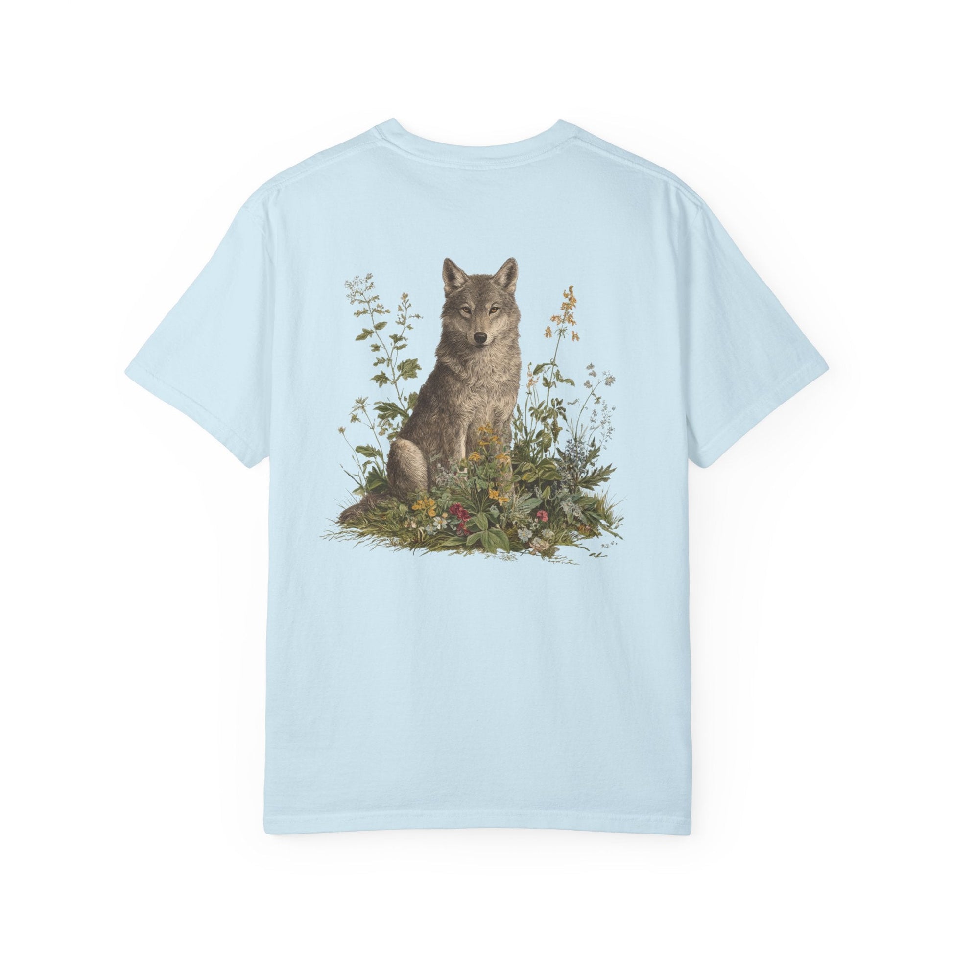 A grey wolf stands watch among blooming meadows in this vintage-style tee. Symbol of instinct, protection, and soulful independence — perfect for anyone who listens to the call of the wild and the whisper of the flowers.