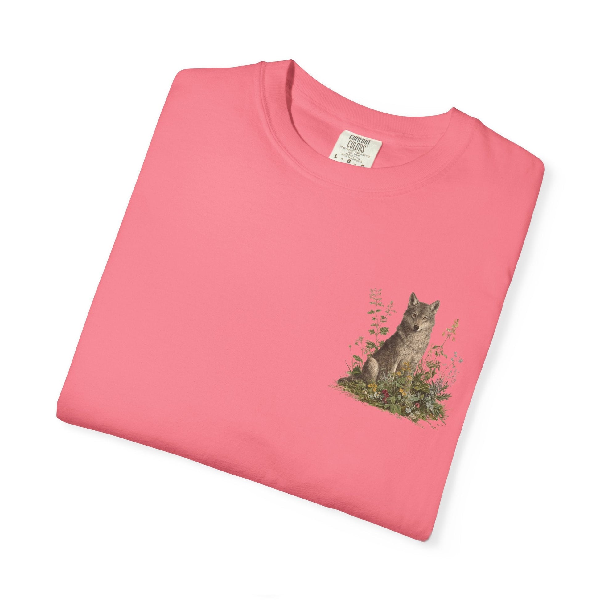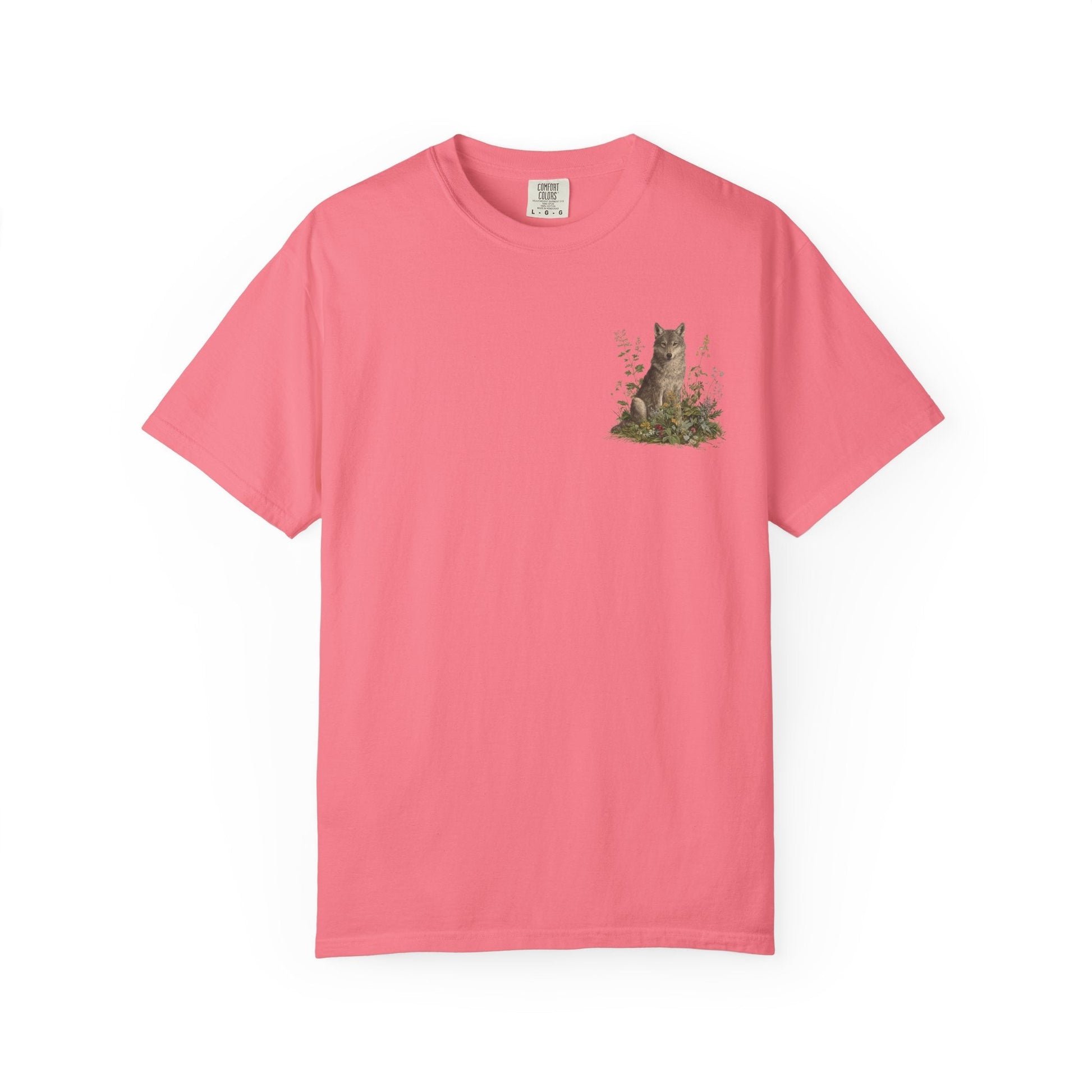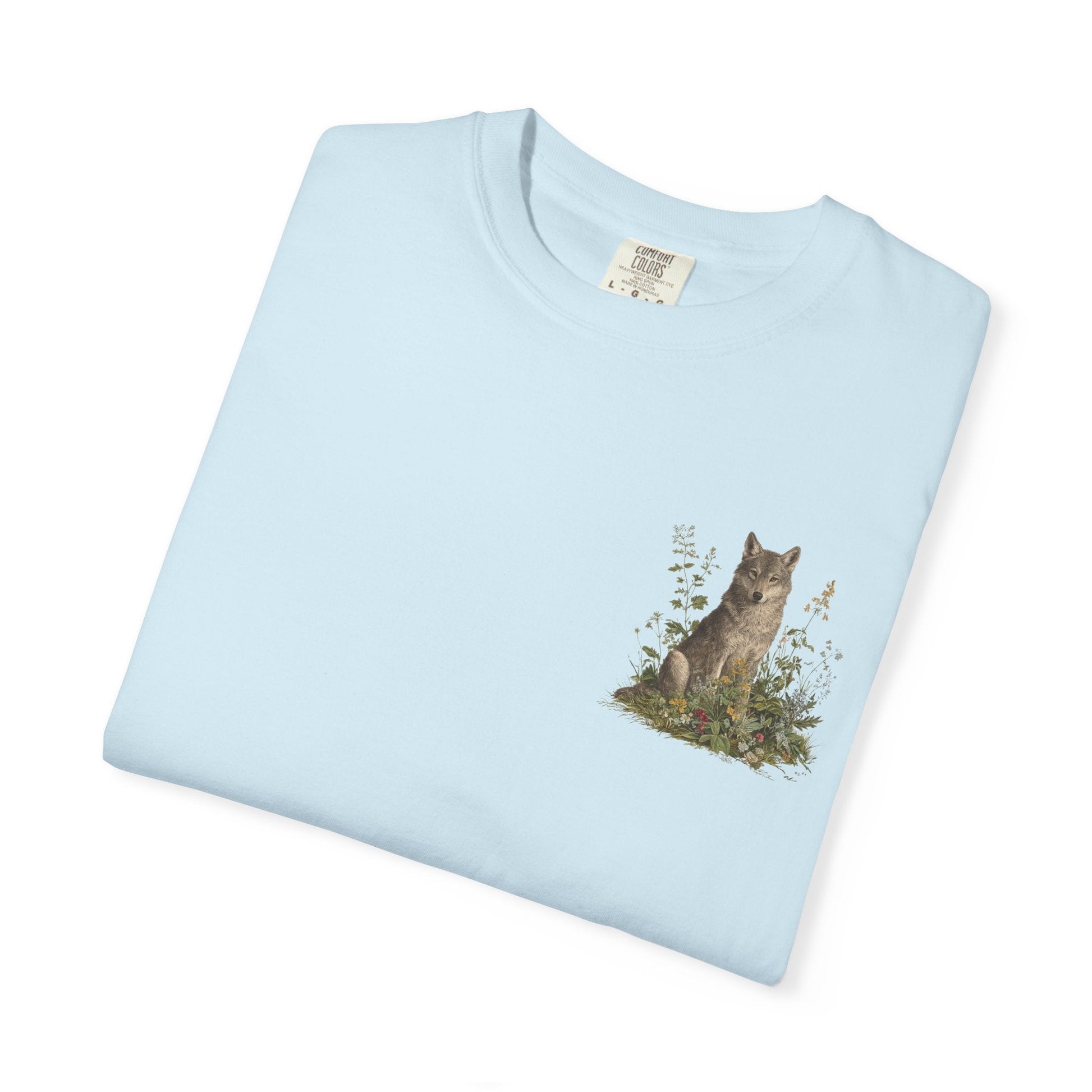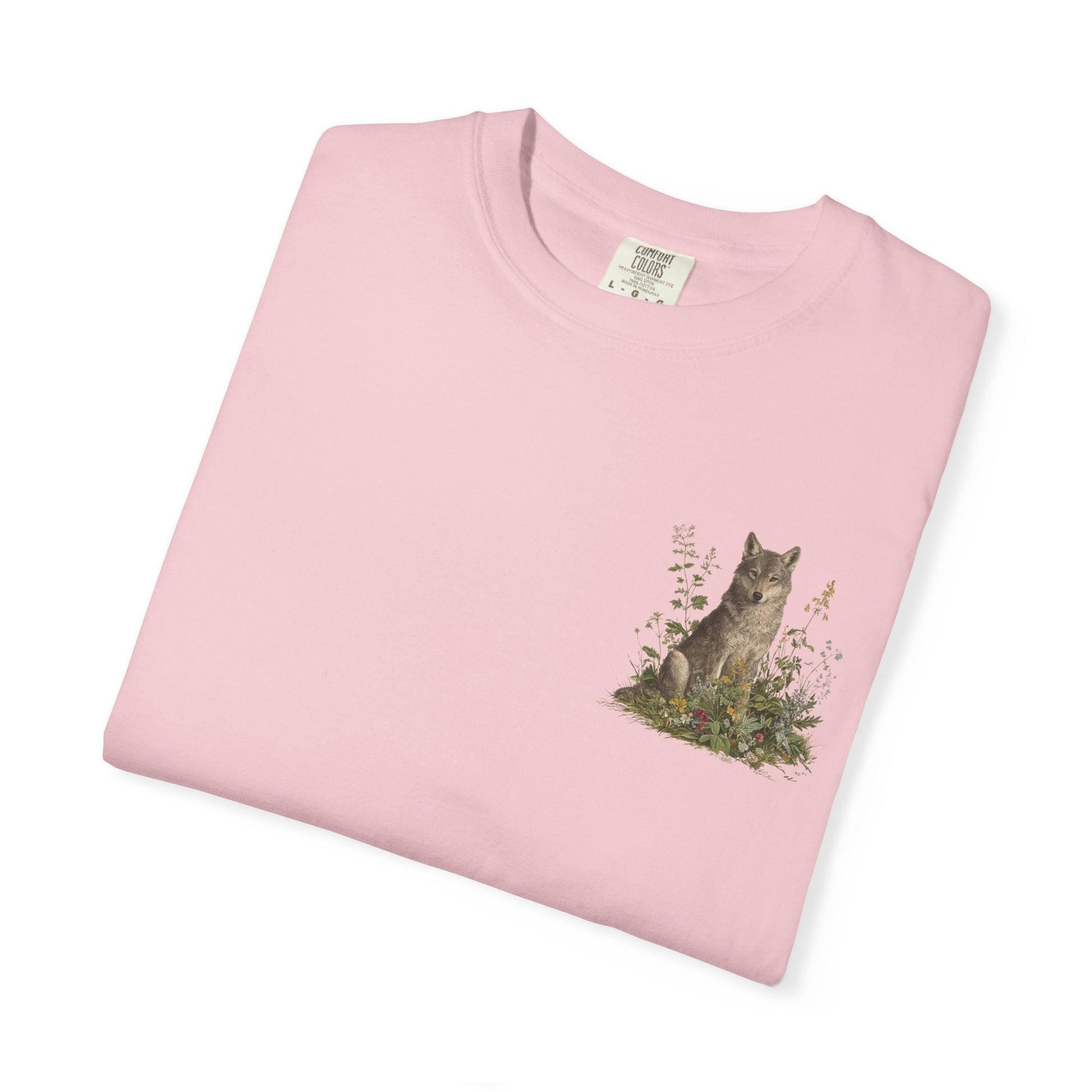 A grey wolf stands watch among blooming meadows in this vintage-style tee. Symbol of instinct, protection, and soulful independence — perfect for anyone who listens to the call of the wild and the whisper of the flowers.