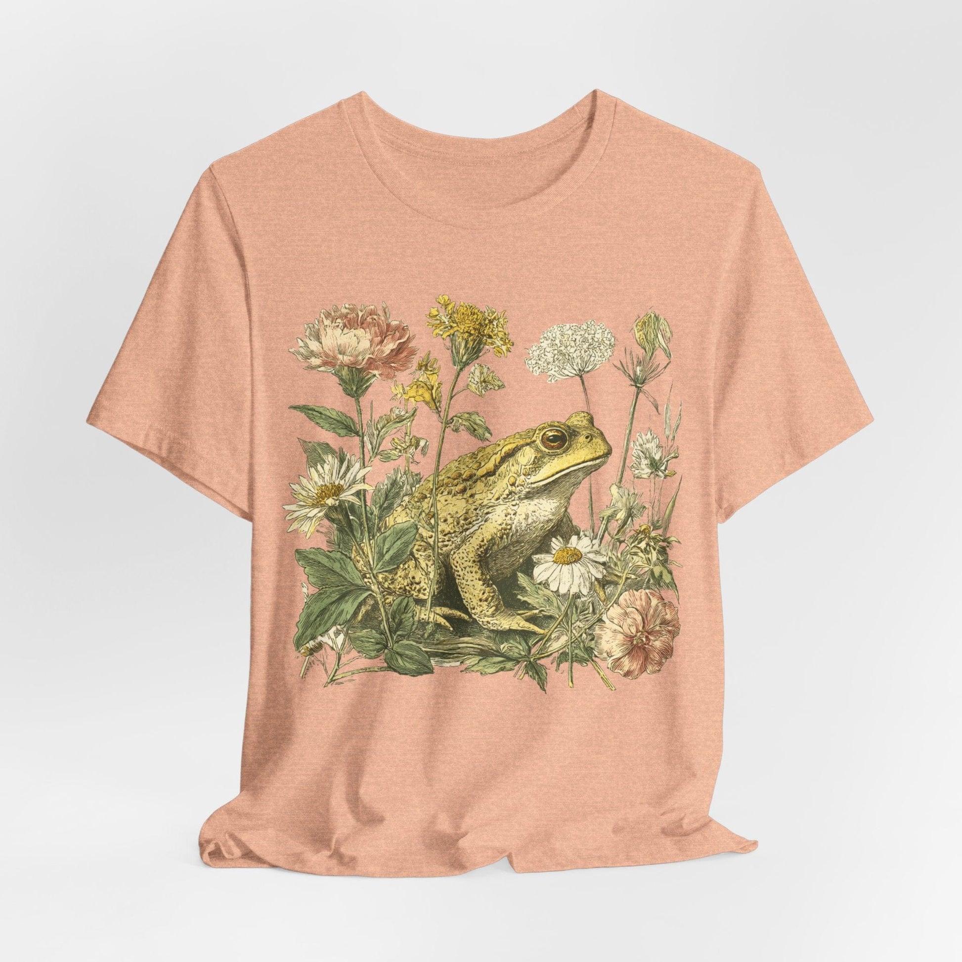 Don’t underestimate the quiet ones. This vintage-style shirt showcases a green toad nestled in wild brush and blooms — a symbol of resilience, survival, and the power to adapt. Perfect for grounded souls with hidden depth.