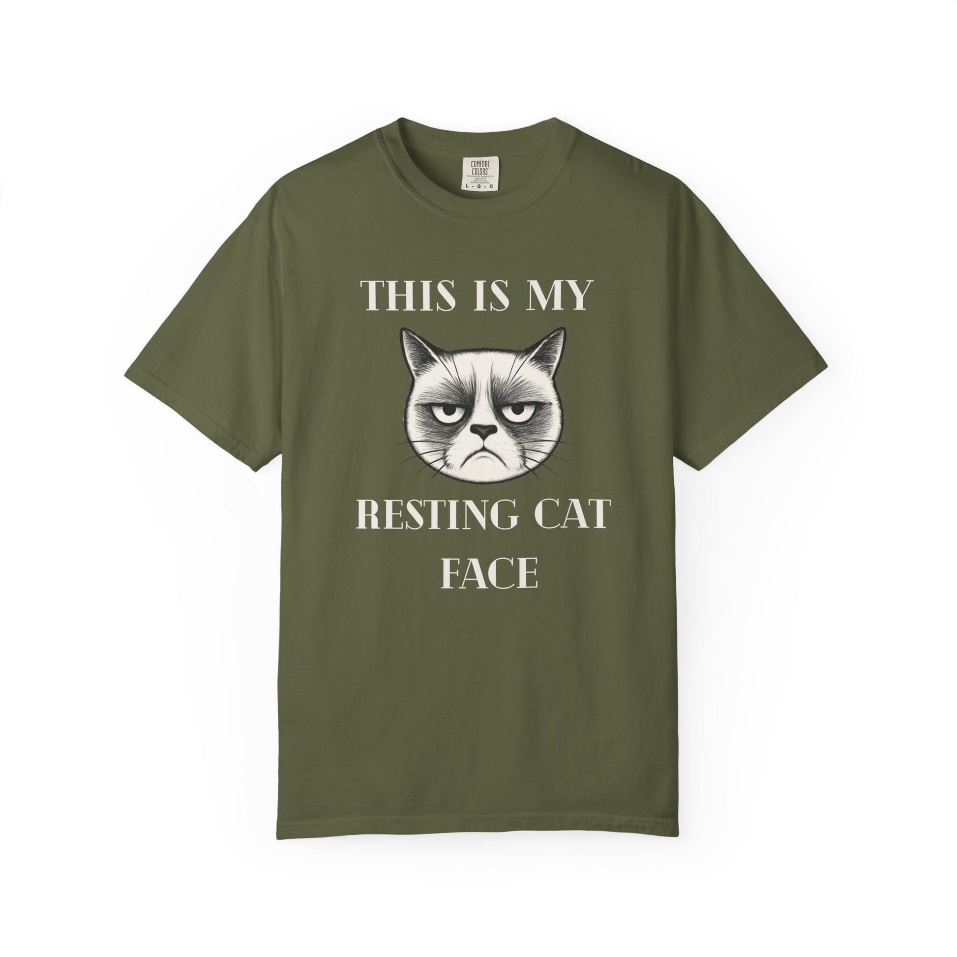 Showcase your love for feline sass with this minimalist “Resting Cat Face” design. Featuring a hand-drawn black-and-white grumpy cat illustration on a solid background, this design is perfect for cat lovers with a sarcastic streak. Ideal for t-shirts, hoodies, mugs, and more.